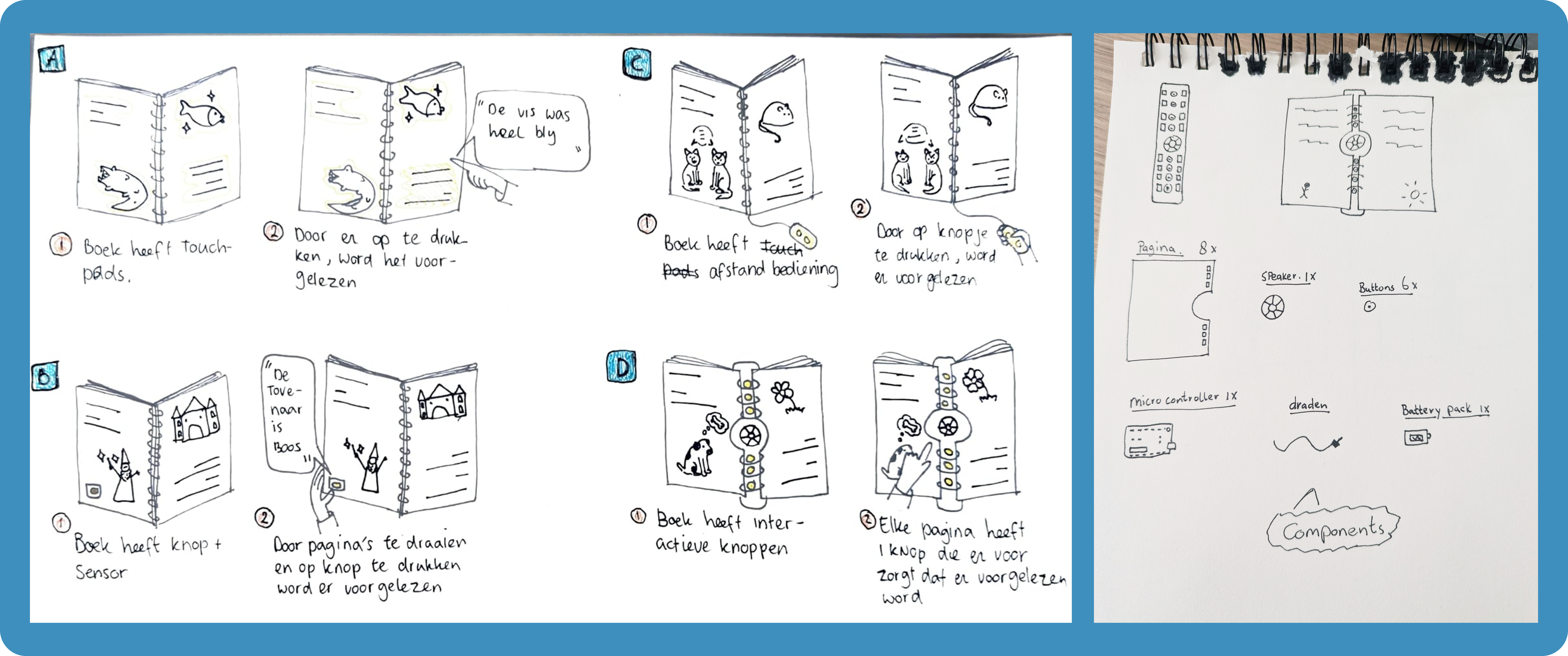 In Sprint 3 hebben we onze focus verder aangescherpt. Door de probe met Efsun en de bezoeken aan de bibliotheek kregen we een veel concreter beeld van de belevingswereld van laaggeletterde ouders. Voorlezen bleek telkens terug te komen als een cruciaal maar onderschat moment, zowel voor de taalontwikkeling van het kind als voor het zelfvertrouwen van de ouder. Dit inzicht leidde tot een aangescherpte ontwerpvraag, gericht op ouders met peuters van 2–4 jaar, en daarbij ook een nieuwe versie van de huidige en gewenste situatie. Daarnaast hebben we eerste schetsen gemaakt en zijn we begonnen met het uitwerken van een eerste versie van ons prototype.